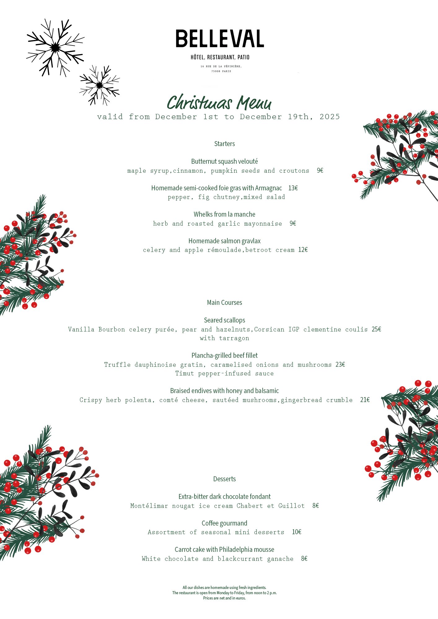 Our restaurant will be closed from December 22, 2025 to January 4, 2026 included. The bar service with the evening snacking menu will remain available during this period.